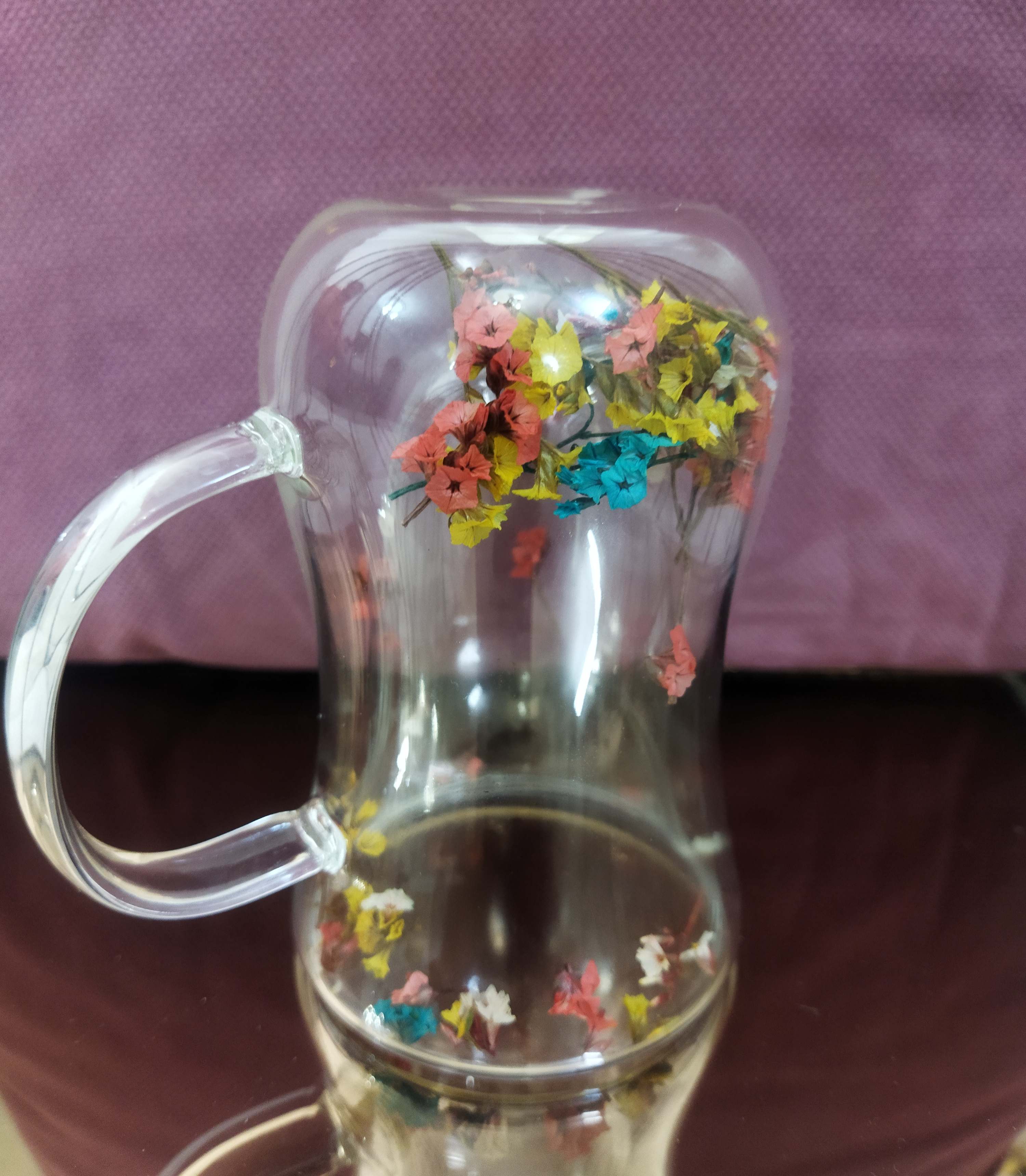 یک محصول باکیفیت و ضد شوک حجم 150 میل مناسب برای نوشیدنی سرد و گرم با گل های خشکی که داخلش داره خیلی این محصول جذاب و دوست داشتنی کرده ارتفاع 10 قطر دهانه ۷ سانت وزن خالی ۲۰۰ گرم وزن پر ۷۰۰ گرم برای کادو و هدیه هم مناسبه محصول وارداتیه